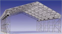 Spezielle Dachauflager sorgen für sicheren Anschluss an das Traggerüst. PVC-Dachplanen mit beidseitigem Keder lassen sich problemlos in die Obergurte der Gitterträger einziehen und bilden somit die Dachhaut.