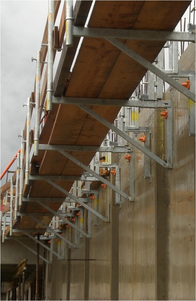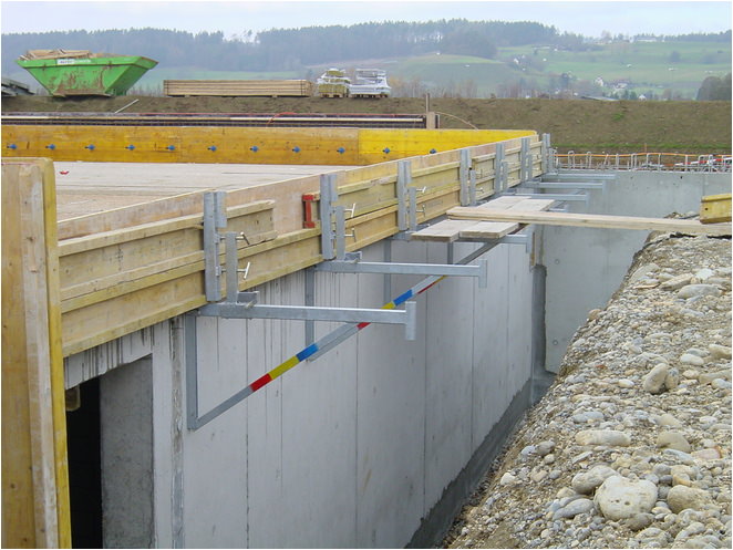Die Layher Abschalkonsole Vario 100 Flex ist genaue Abschalung, Auflager und Arbeitsgerüst in Einem.