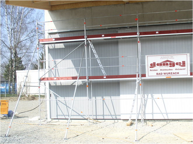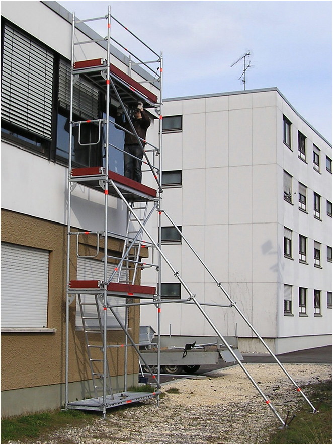 Die moderne Architektur mit ihren Glas- oder Blechfassaden mach sich keine Gedanken wie der Handwerker sein Gerüst stellen und verankern soll. Auch sind Verankerungslöcher in frisch verputzten Wänden nicht gern gesehen. Mit der neuen Layher-Gerüststütze geht man diesen Problemen aus dem Weg:
